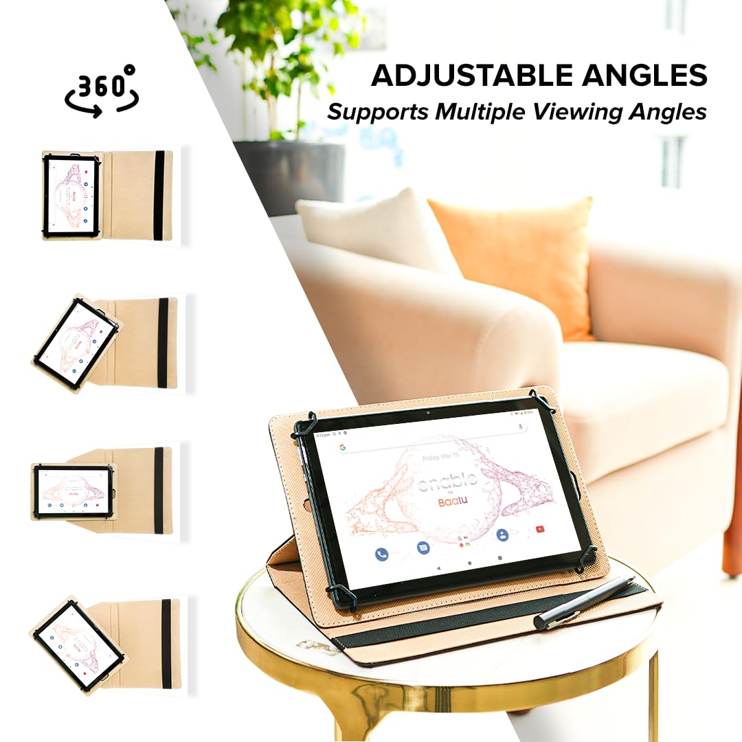 - Flip Cover - Protect your Baatu Enable Tab with this stylish Black flip cover. Crafted from premium artificial leather, it offers full-body scratch and bump protection. Featuring a smart stand for versatile viewing and precise cutouts for all ports, it's the perfect blend of elegance and functionality for your tablet.