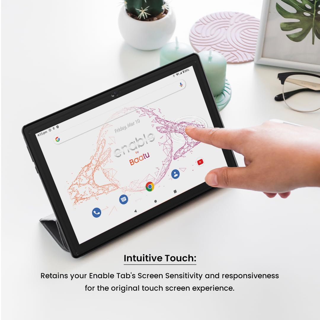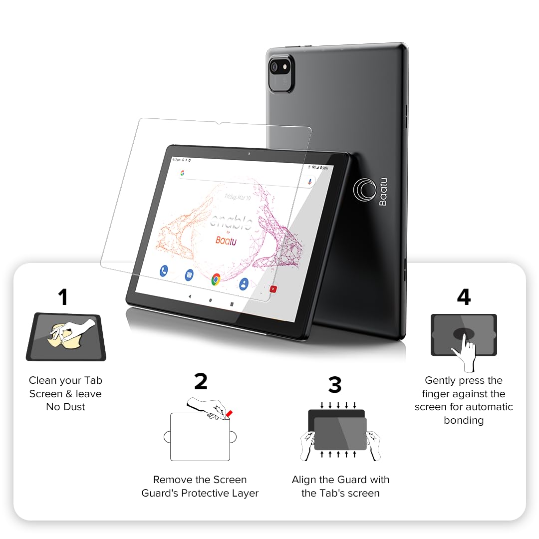 - Screen Guard - Protect your Baatu Enable Tab with this ultra-clear screen guard. It offers superior scratch and scuff resistance, preserving your display's clarity and touch responsiveness. Designed for easy, bubble-free application, it's the invisible shield your tablet needs for lasting protection.