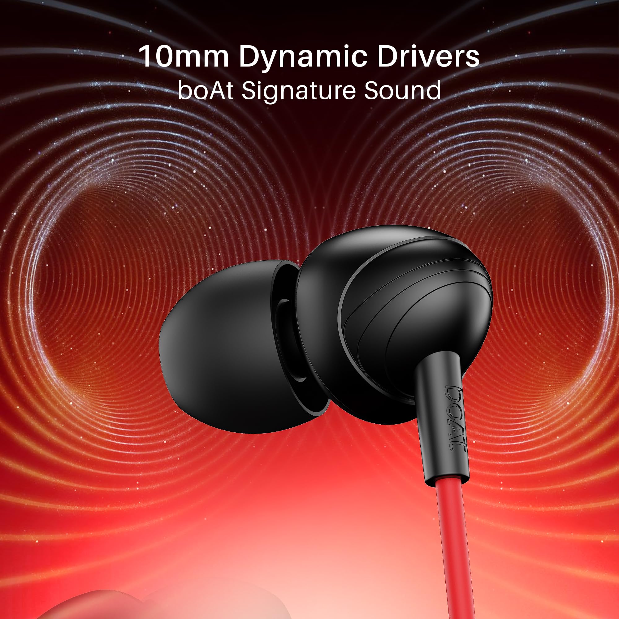 boAt 2025 Launch Bassheads 211 Wired Earphones with 10mm Drivers, Signature Sound, in-Line Microphone, 3.5mm Jack, Voice Assistant & 120cm Cables (Raging Black)