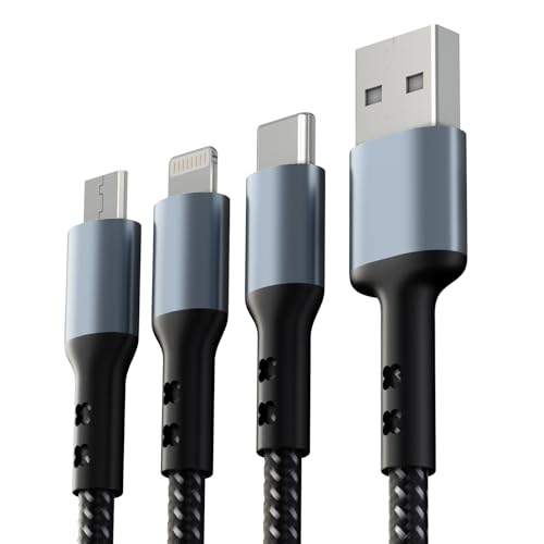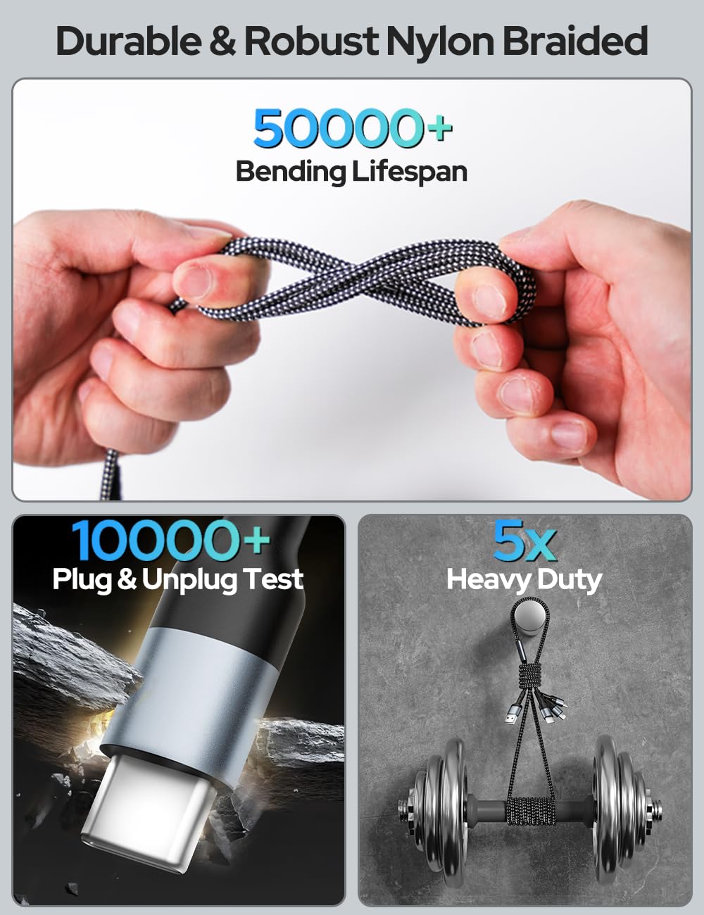 • 🚀 Nylon Braided Tangle-free Design: Premium Nylon 3 in 1 charging cable adds additional durability and tangle free with a tested lifespan of 10000+ bending test. Our multi cable made of Strong military fiber, the most flexible, powerful and durable material, makes tensile force increased by 200%.
