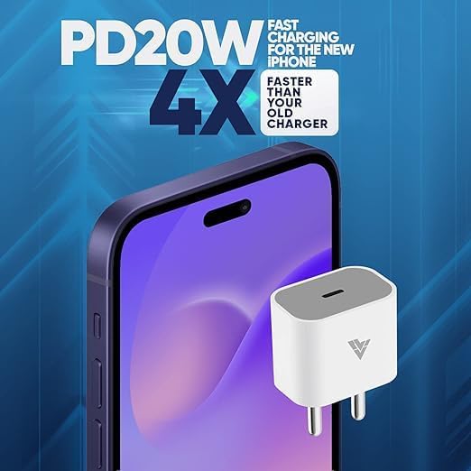 Dr Vaku® 20W Fast Charger Adapter for iPhone 17/17 Air/17 Pro/17 Pro Max, 16/16 Plus/16 Pro/16 Pro Max, 15/15 Plus/15Pro/15 Pro Max & Other Type C Devices with 1 Meter USB C to Type C Data Cable