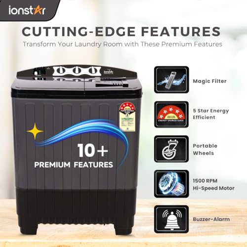 Ionstar 7 Kg Semi Automatic Washing Machine – 5 Star Rated – 2025 – Top Load – Jet Pulsator – Magic Filter – Special Air Dryer – Buzzer – Wheels – Powerful Copper Motor – 1500 RPM (STAR70-AQUA-G)
