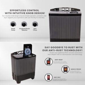 • MODERN SLEEK DESIGN - Simple and intuitive knob control panel allows easy wash setting selection. Its compact design fits neatly into any corner of your home, while being lightweight and easy to move. Perfect for small apartments, hostels, and space-saving laundry setups.