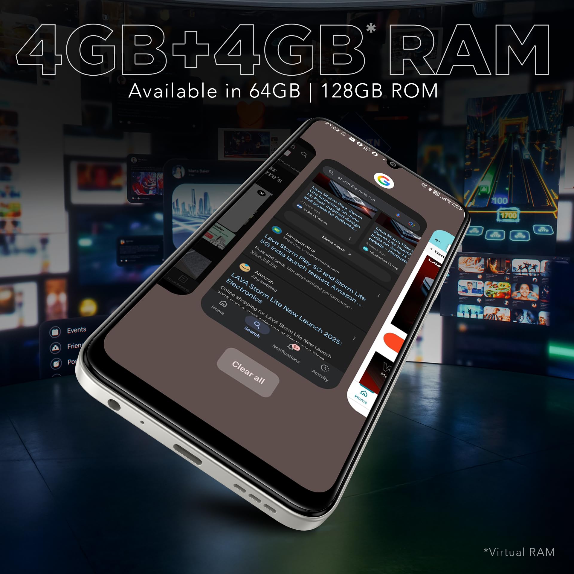 Lava Storm Lite 5G (Cosmic Titanium, 4+4*GB RAM, 64GB Storage) | India’s First MTK Dimensity 6400 Processor | 50MP AI Camera | IP64 Rated | 120 Hz Display | 5000 mAh Battery | Supports All 5G Bands
