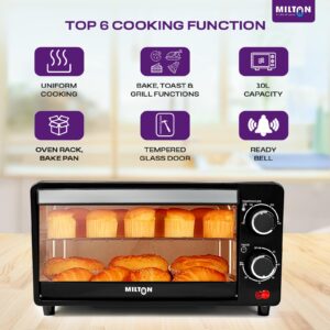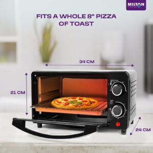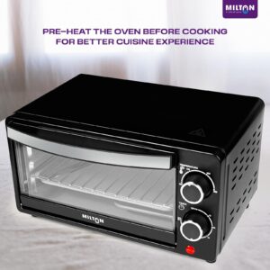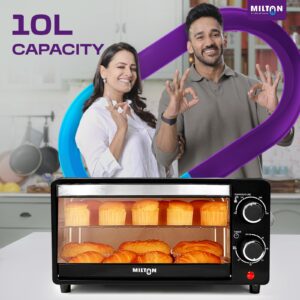 Milton 10L OTG Oven Toaster Griller for Kitchen | 800W | Royal Black Finish | Auto Shut-Off | 250°C Thermostat | Timer, Bell & Tempered Glass | Easy to Clean | Includes Grill Rack & Baking Tray