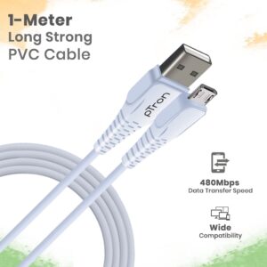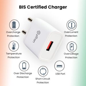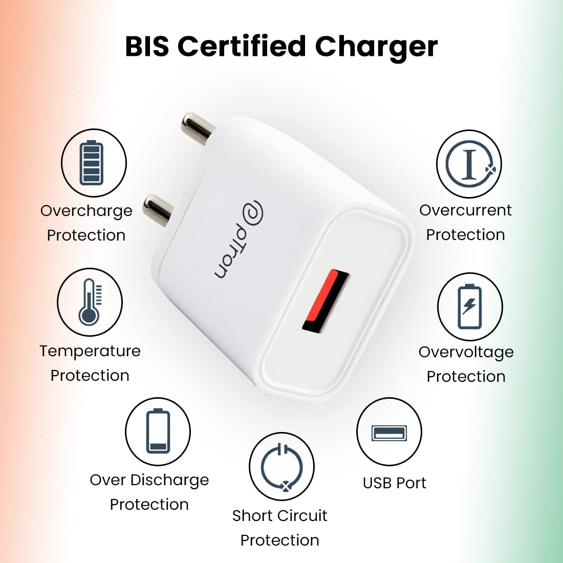 pTron Volta 12W Single Port USB Fast Charger, BIS Certified, Made in India Wall Charger Adapter, Universal Compatibility (1 m Micro USB Cable Included, White)