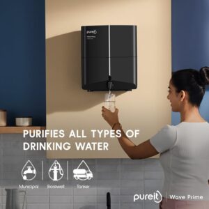 Pureit Wave Prime Mineral RO+MF | 6 stage Purification | 7 Litres Capacity | Up to 45% Water Saving | Suitable for Borewell, Tanker & Muncipal Water | Wall Mountable | Black