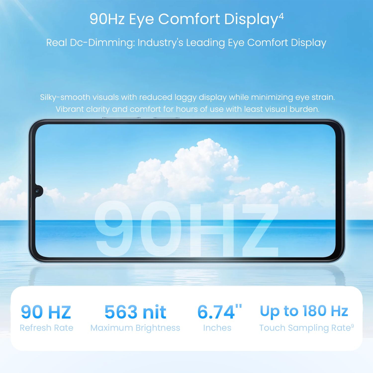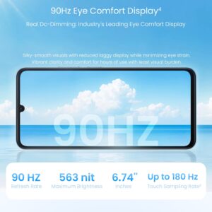 - Eye Comfort DisplayA vibrant 6.745-inch screen with 90Hz smoothness and blue light reduction for comfortable, immersive viewing.