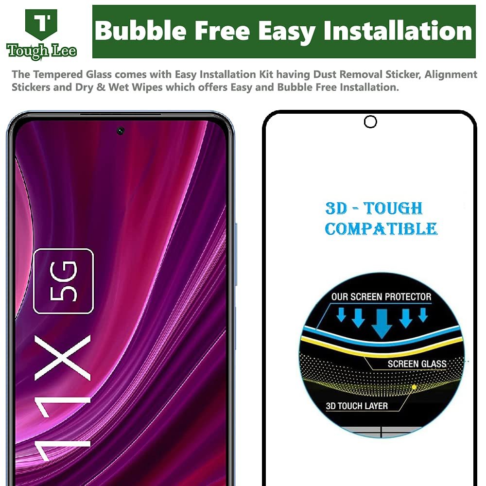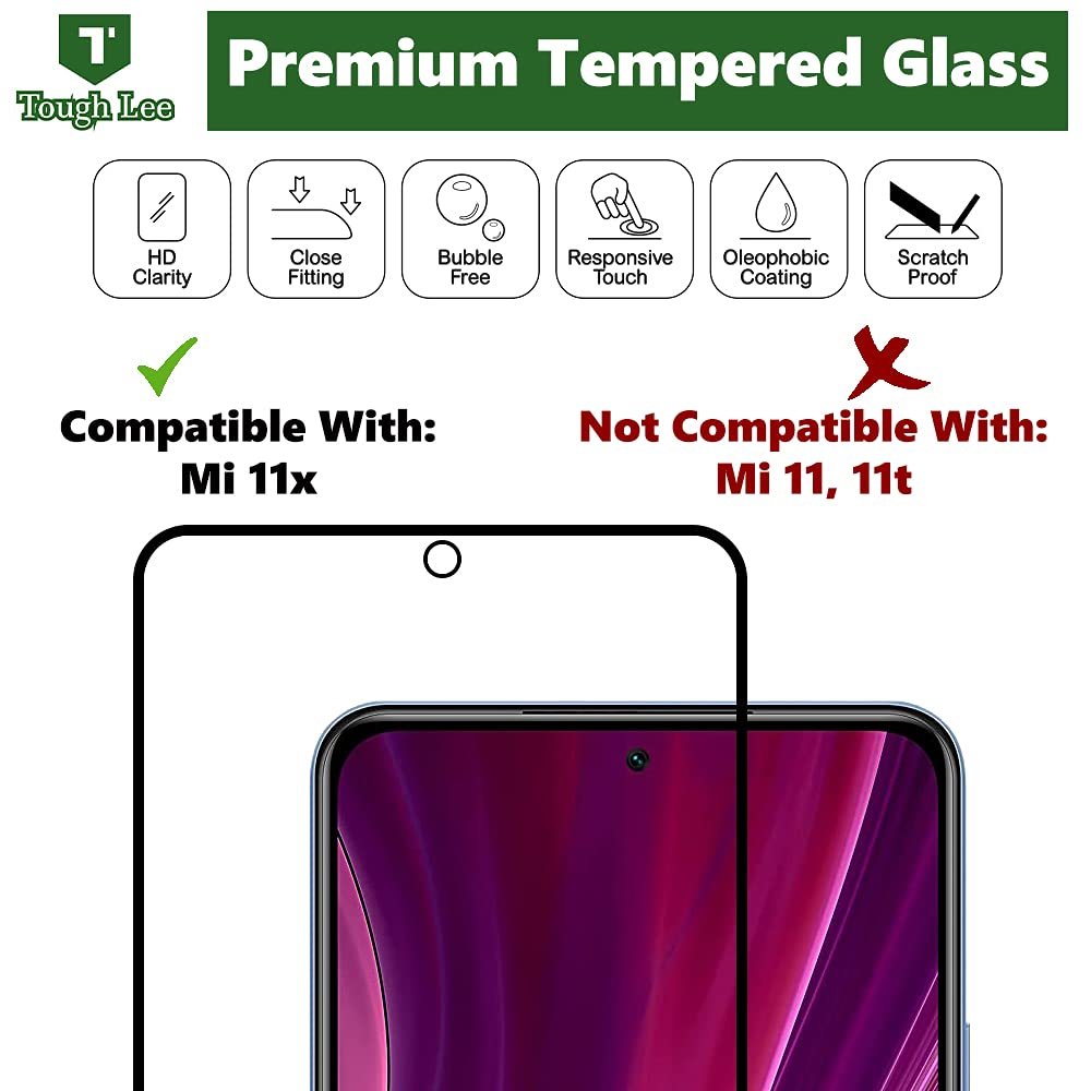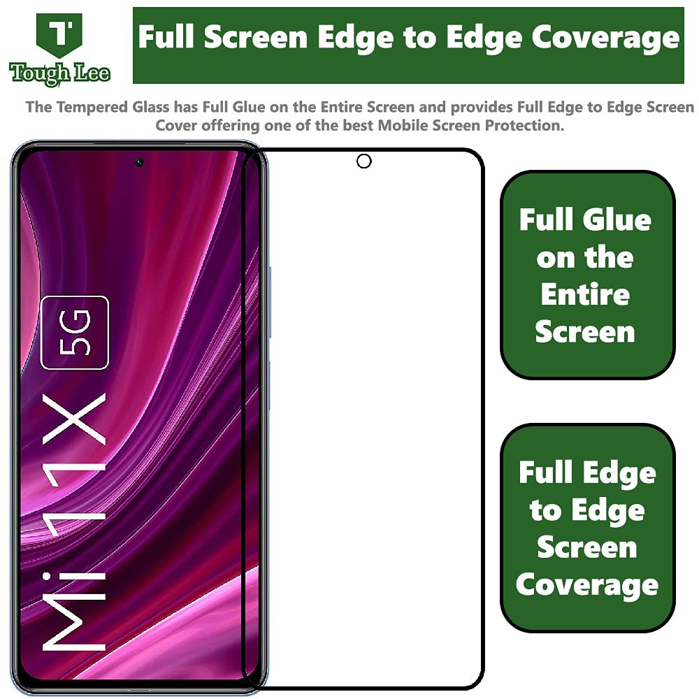 Tough Lee Tempered Glass Screen Guard for Mi 11x 5G / Mi 11x Pro 5G / Xiaomi 11i / 11i Hypercharge (Black) Edge to Edge Full Screen Coverage Gorilla Protector with Easy Installation Kit; Pack of 1